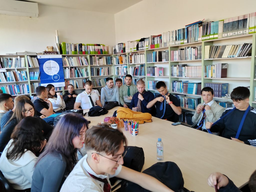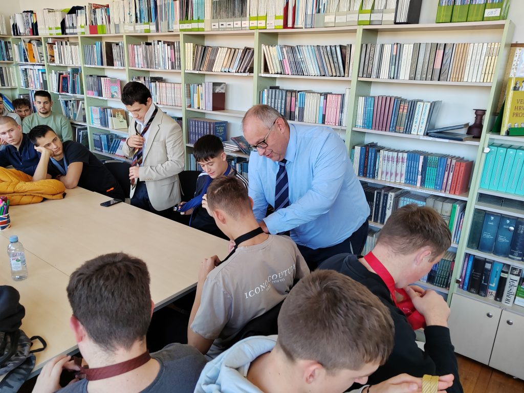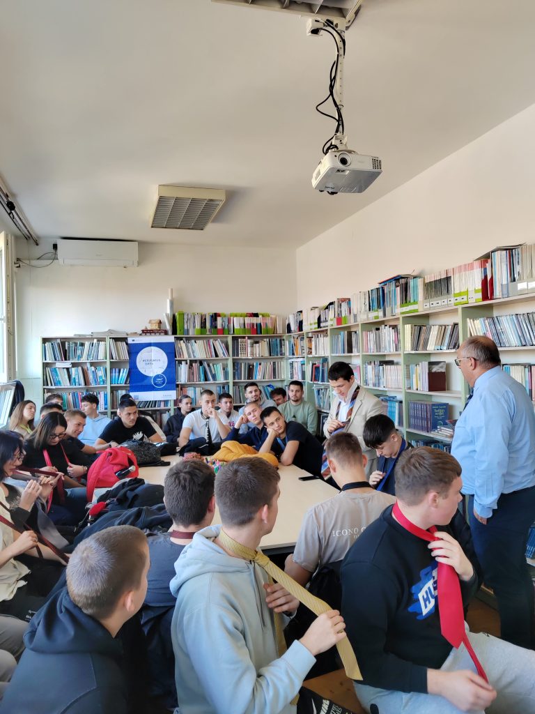 Nakon povijesnog uvoda, učenici su imali prilike sudjelovati na radionici vezivanja kravate.