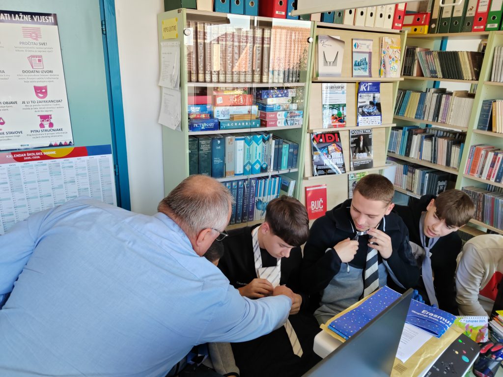U školskoj knjižnici održana je radionica pod vodstvom ravnatelja škole. Učenicima je otkrio tajne brzog i jednostavnog vezanja kravate. Učenici su uz malo truda brzo usvojili ovu važnu “životnu” vještinu, koja će im zasigurno koristiti u mnogim prigodama tijekom života.