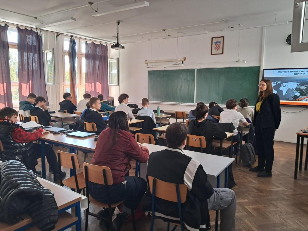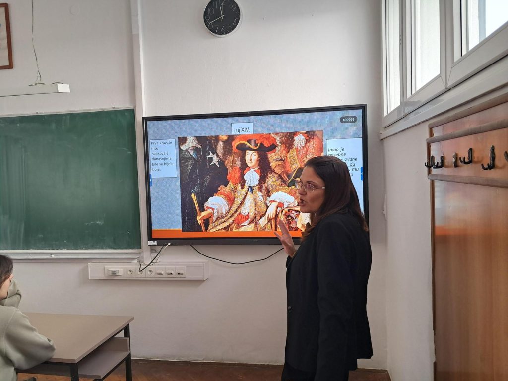 Dan smo nastavili edukativnim predavanjem o očuvanju hrvatske kulturne baštine, s posebnim naglaskom na kravatu koje je pripremila naša nastavnica povijesti.
