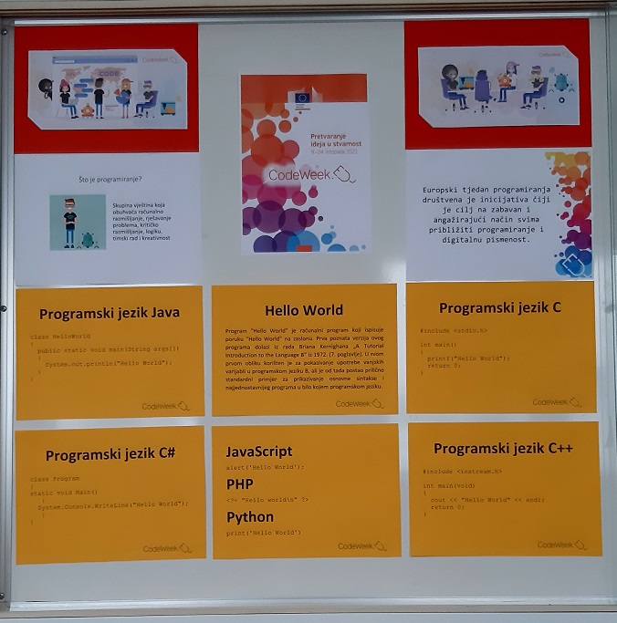„Europski tjedan programiranja društvena je inicijativa čiji je cilj na zabavan i angažirajući način svima približiti programiranje i digitalnu pismenost.“. Izvor: https://codeweek.eu/