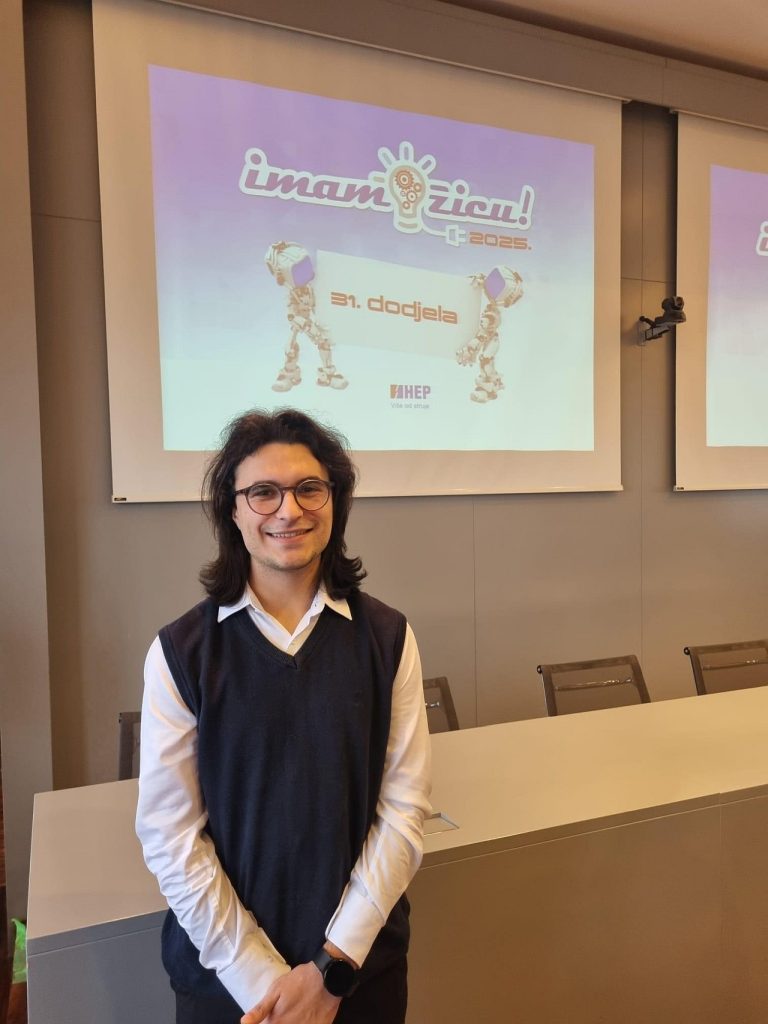 Nagrada „Imam žicu!“ priznanje je za njegov trud, ali i poticaj za daljnji napredak u području informacijskih tehnologija na studiju računarstva. Antonio je izvrstan primjer kako se zalaganjem u strukovnom obrazovanju postižu izvrsni rezultati koji otvaraju vrata uspješnoj budućnosti.
