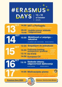 Pozivamo vas da nam se pridružite u obilježavanju Dana Erasmusa sljedeći tjedan uz moto Live our values, inspire our future! — uživajte u zabavi, druženju